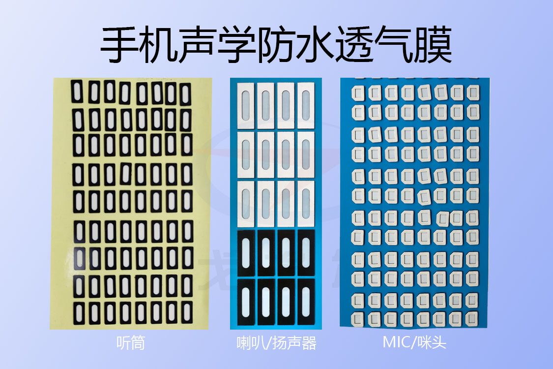 (喇叭聲學(xué)防水透氣膜、聽筒聲學(xué)防水透氣膜、咪頭聲學(xué)防水透氣膜)等方式,來做好聲學(xué)器件透聲阻水這一特殊要求。與采用硅膠、